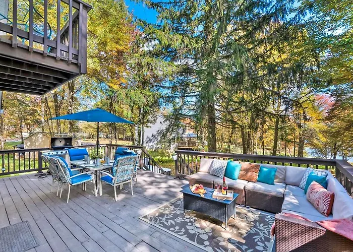 Die Villa Private Dock - Lakefront - Hot Tub - Kayaks - Fire Pit Long Pond liegt ungefähr 6 km vom Camelbeach Waterpark entfernt und bietet eine Sauna für ein entspannendes Erlebnis. Diese Villa in Long Pond bietet Möglichkeiten für Skifahren und Radfahren in der Gegend und befindet sich in einer Entfernung von ca. 10 Autominuten von den Kalahari Waterparks.
